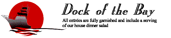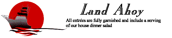 Shrimp Chinois | Soups & Nibblers | Salads | Dock of the Bay | Land Ahoy | Just Desserts |